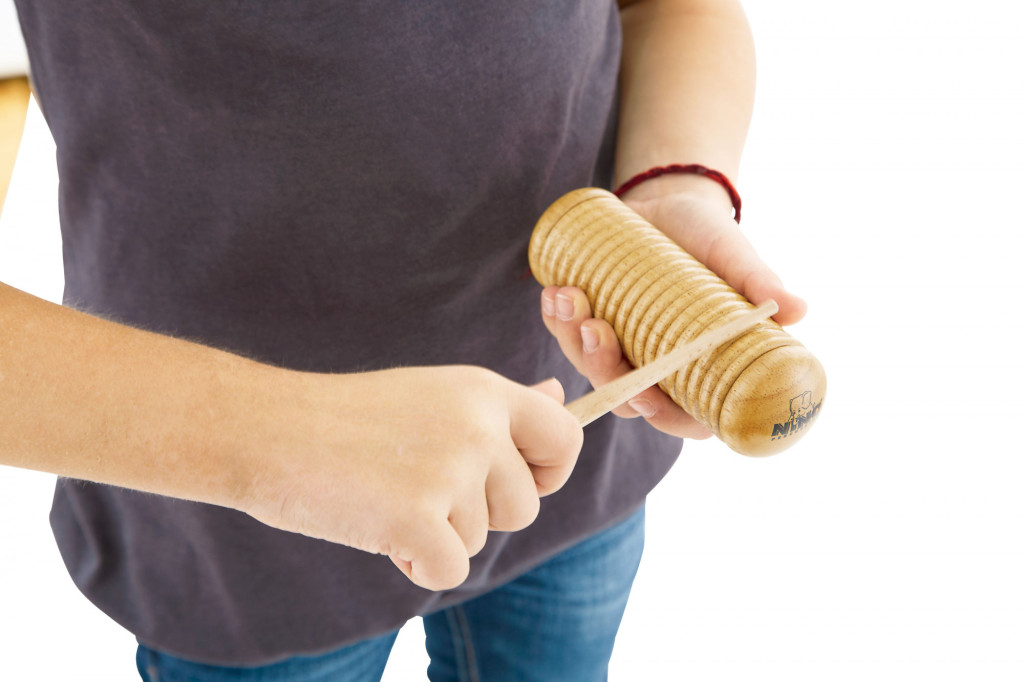 A Meinl NINO güiro egy latin-amerikai eredetű ritmushangszer, amely jellegzetes kaparó hangjáról ismert. Fából vagy műanyagból készült. A testén hosszanti rovátkák futnak végig, amelyeken egy pálcával végighúzva recsegő, sercegő hang keletkezik. A hang ritmikusan változtatható a húzás sebességével és erősségével. A güiro könnyen megszólaltatható, ezért ideális hangszer gyermekeknek is, különösen dobkörökön, zenefoglalkozásokon. Fejleszti a ritmusérzéket, a figyelmet és a finommotorikát, miközben különleges hangszínével színesíti a közös zenélést.